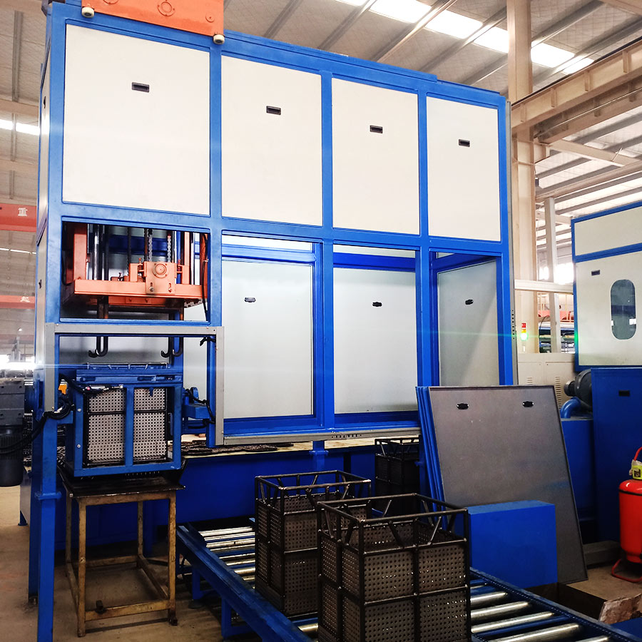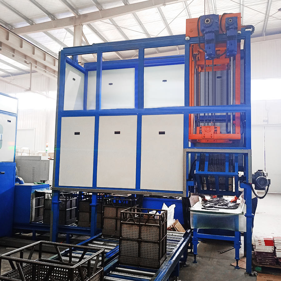 該設備有自動上下料及轉角系統、超聲波清洗系統,自動拋動、自動溢流和油污分離裝置,噴淋系統、自動高壓切水系統、自動烘干系統。機械手自動輸送系統采用高精度直線導軌配合高精度位置檢測傳感器,機械手可以準確的實現工件的抓取和放置。自動進排液和自動加溫系統完全實現了無人干預,自動運行,很大程度上降低了工人的勞動強度。先進的霧氣處理系統可以將清洗時產生的霧氣冷凝回流,空氣經過濾和活性炭吸附后排出。
